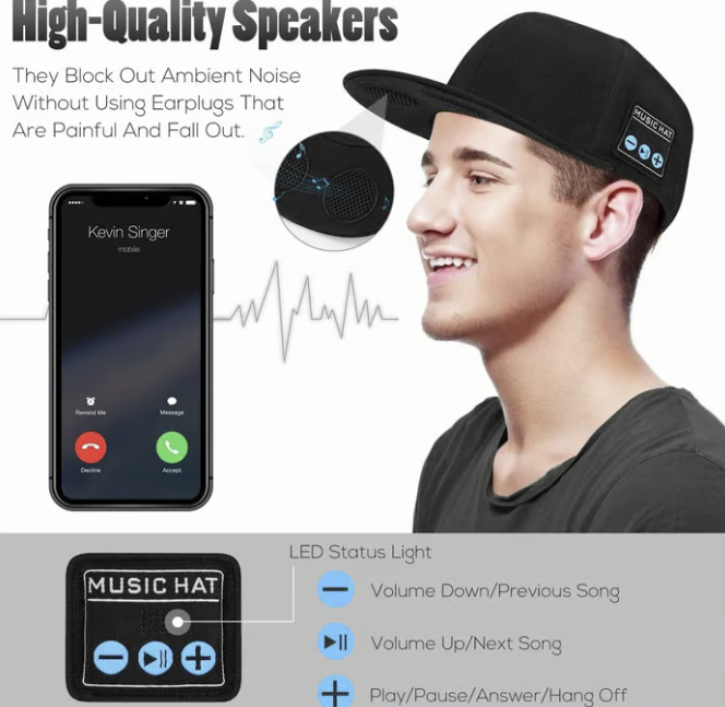 Bluetooth Sport Cap Is Made Specifically For Hands-Free Calling And Good Sound Quality. The Stereo Sound Quality Provided By The Bluetooth Hat Ensures You A Surprising Musical Environment. Put The Bluetooth Hat To Enjoy Wonderful Music And Life.It's Also Great Gift For Man And Woman.